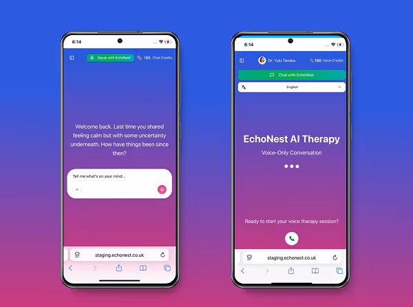 EchoNest has been a real lifeline for me. I love that I can get support anytime, day or night, and choose between texting or talking depending on my mood. The progress tracking keeps me motivated, and knowing my data is private gives me peace of mind. It’s become my go-to for everyday support.